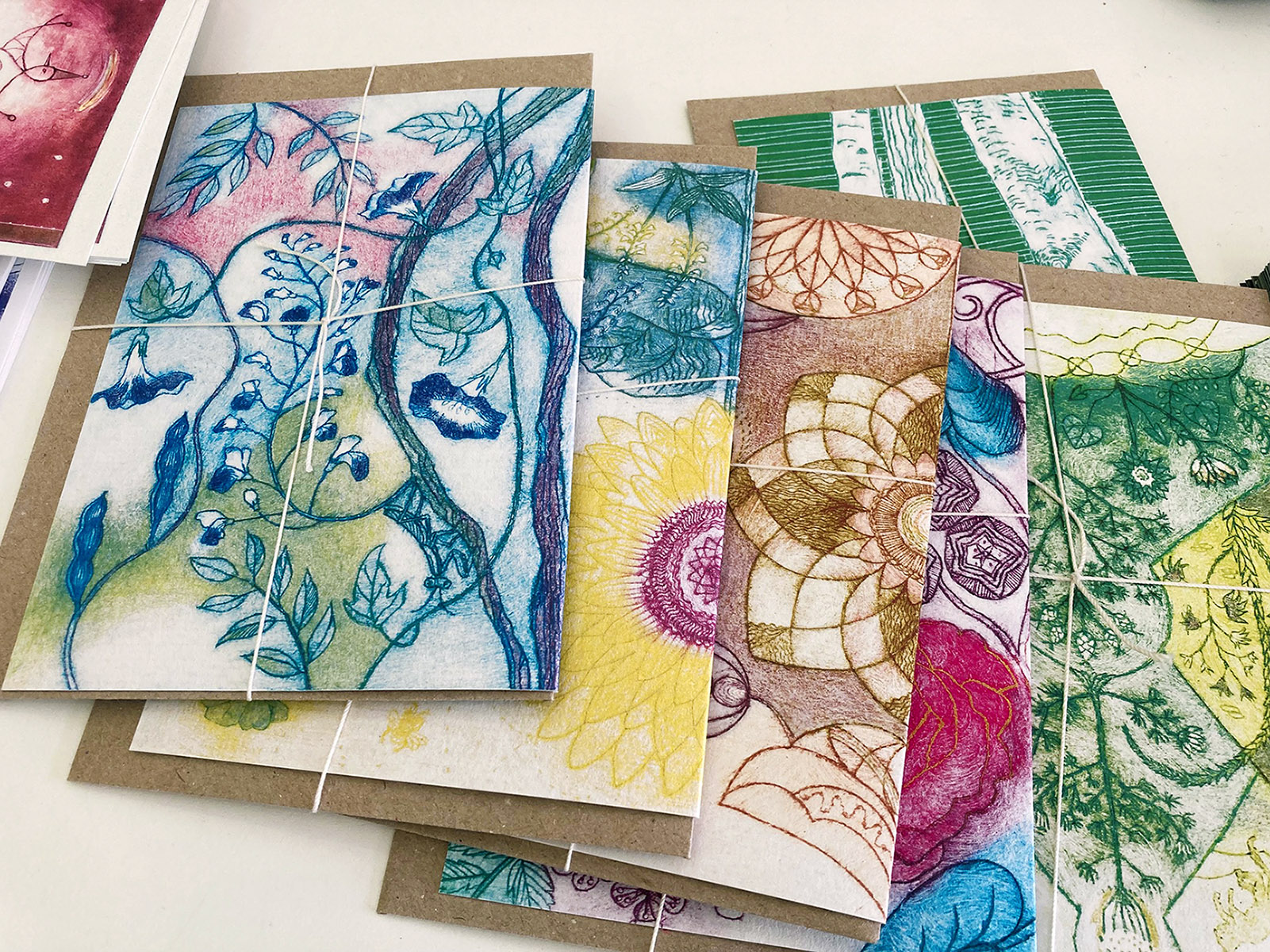 Postcards printed carbon neutral in Germany on Metapaper Extrarough Recycling 350 gsm / textured Conqueror 300gsm.